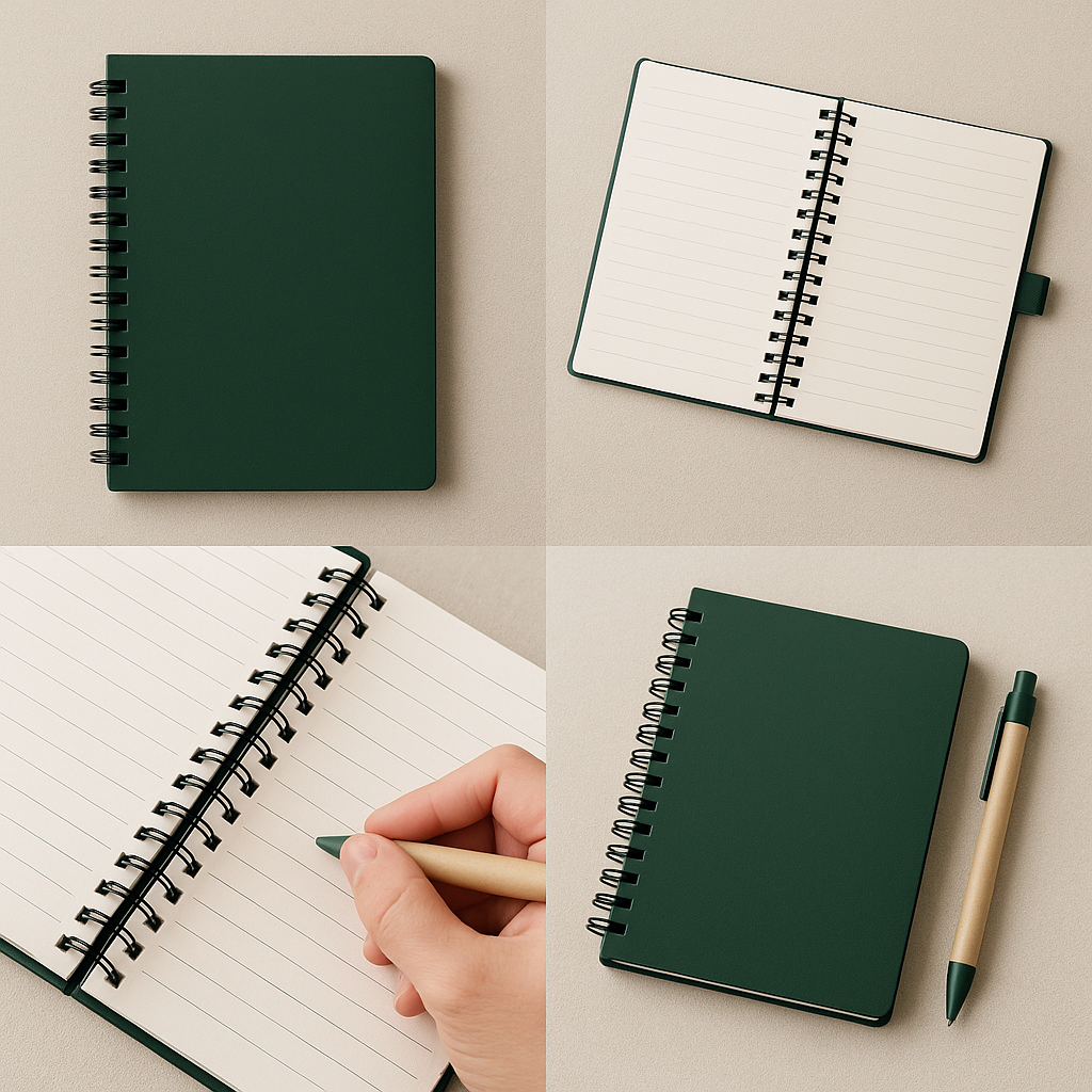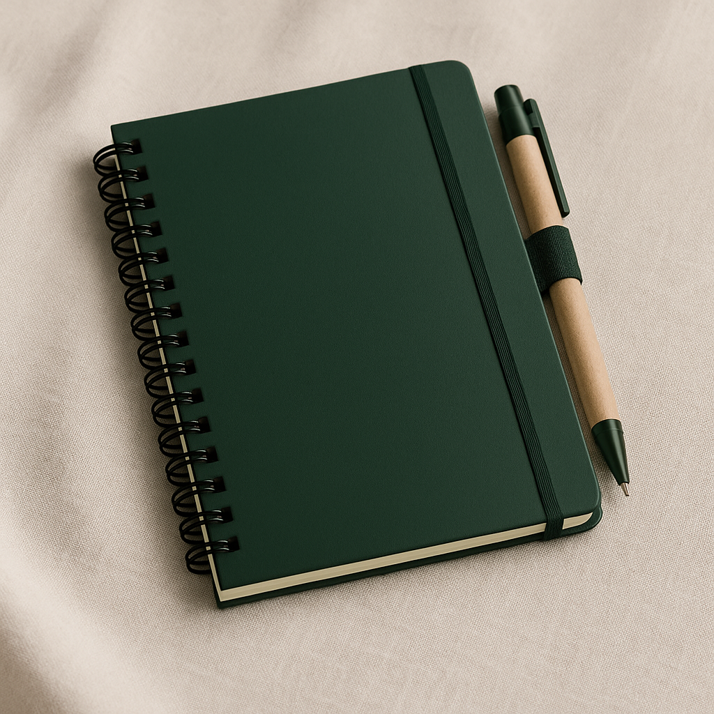 Acest caiet spirala combina functionalitatea cu un design modern si eco-friendly. Dispune de o coperta durabila , file liniate pentru o scriere ordonata si un pix din carton reciclat, perfect integrat in suportul lateral. Ideal pentru notite zilnice, scoala, birou sau calatorii.