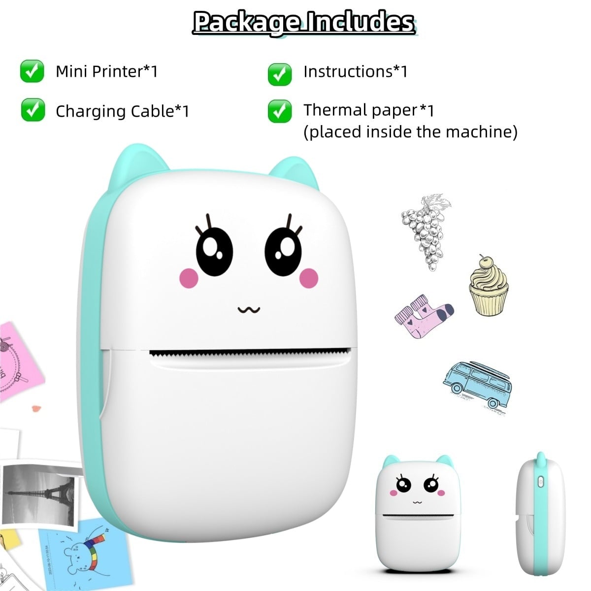 Aceasta mini imprimanta termica portabila imbina perfect utilitatea cu un design extrem de dragut, ideal atat pentru copii, cat si pentru adulti. Cu un aspect prietenos si compact, imprimanta permite imprimarea rapida a notitelor, listelor, desenelor, etichetelor sau fotografiilor alb-negru direct de pe telefon, fiind un accesoriu excelent pentru scoala, birou sau activitati creative.