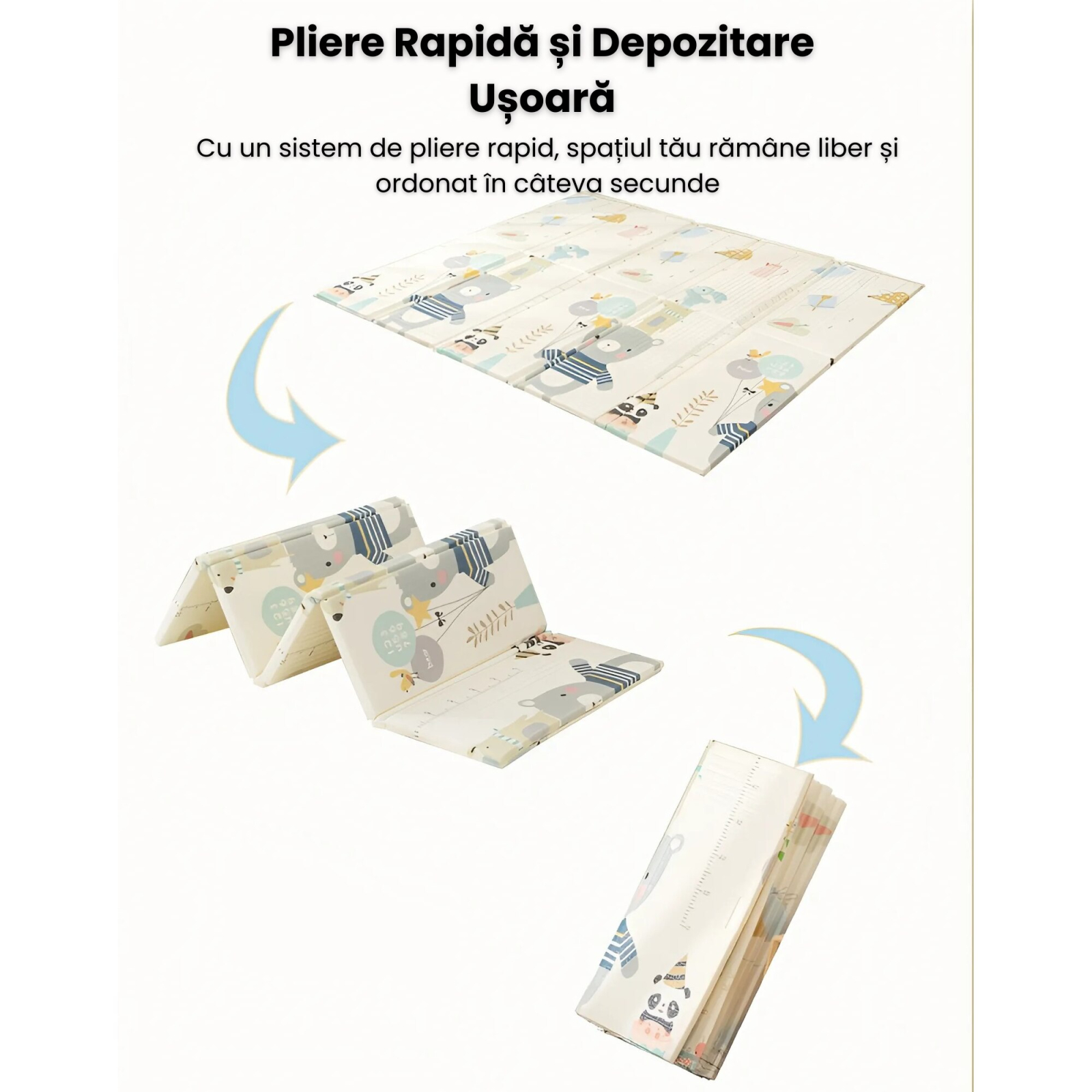 Covor de Joaca Termic Urs Panda 180x200x2Cm, Pliabil, Anti-Derapant, Educativ si Interactiv, Doua Fete, Anti-Pete, Anti-Alunecare, Saltea XPE, Impermeabil, Protectie Impotriva Loviturilor, Pentru Fete si Baieti