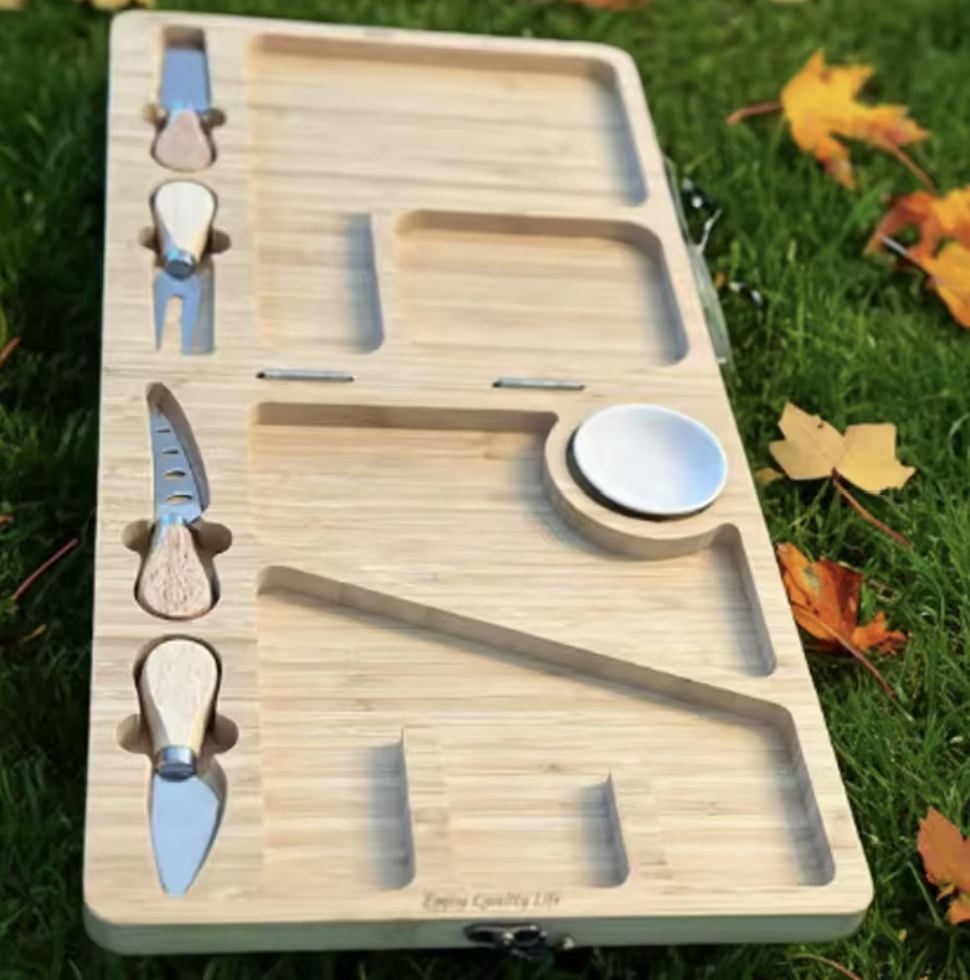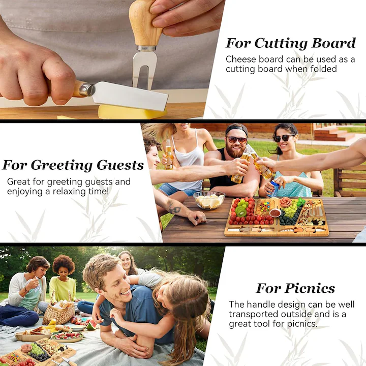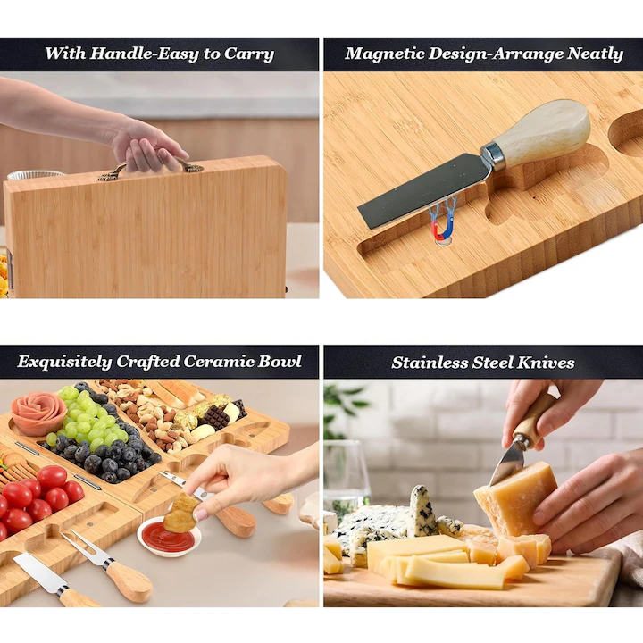 Transforma orice masa intr-un moment memorabil cu acest platou din bambus, creat special pentru iubitorii de gustari rafinate. Cu un design natural si accesorii din inox, este alegerea perfecta pentru petreceri, aniversari sau seri relaxante in familie.