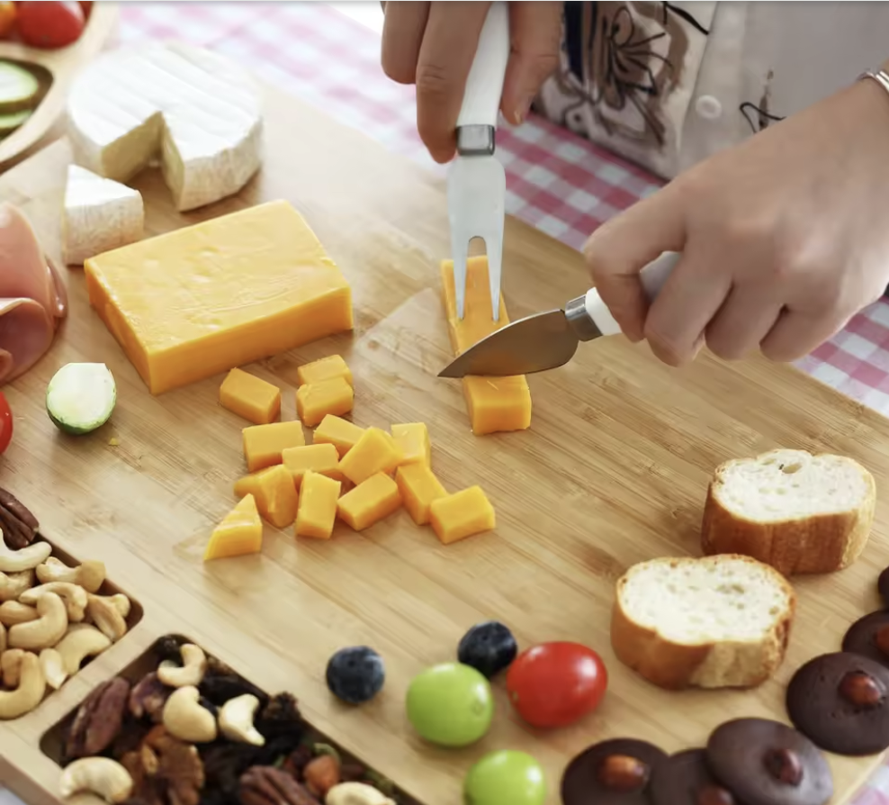 • 4 cutite specializate pentru branzeturi – fiecare cu forma si functie diferita, ideale pentru taierea, felierea si intinderea branzeturilor moi sau tari